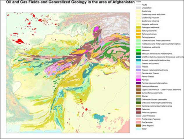 ذخاير نفت افغانستان ابتدا حدود 100 ميليون بشكه تخمين زده شد ولي